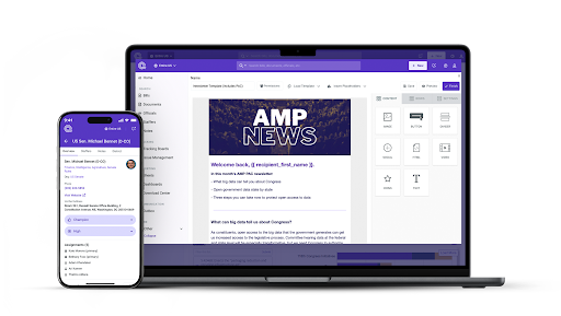 Drive advocate engagement and increase your impact on lawmakers with sleek, customizable action centers, built-in texting and email, and an advanced advocacy CRM. With Copilot, you can draft calls to action, summarize campaign performance, and uncover emerging trends across channels — all in seconds. Use real-time reporting to guide strategy, dig into campaign analytics to surface new insights, and zoom out with cross-team reporting to keep everyone aligned.