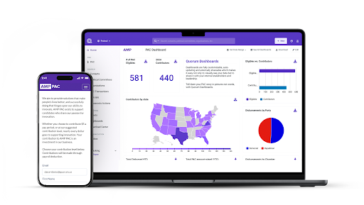 Stay compliant, raise funds, and report results with modern, easy-to-use tools and support from a team of industry experts. Easily manage daily PAC operations and file state and federal compliance reports. Accelerate your PAC workflow by instantly surfacing contribution trends, tracking donor engagement, and uncovering fundraising opportunities with natural-language search. Build beautiful websites and generate personalized messages to reach donors faster and maximize contributions.