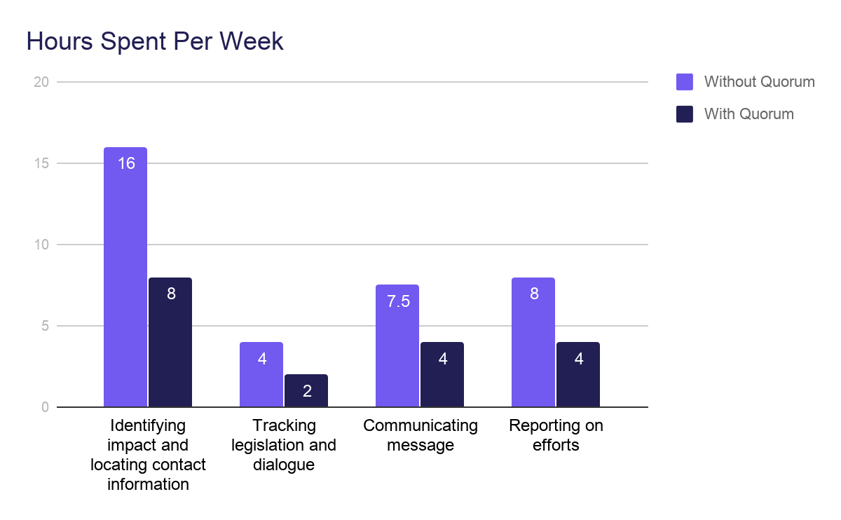 With dialogue, legislation, and automated reporting, Quorum makes it easy to track developments and engage officials.