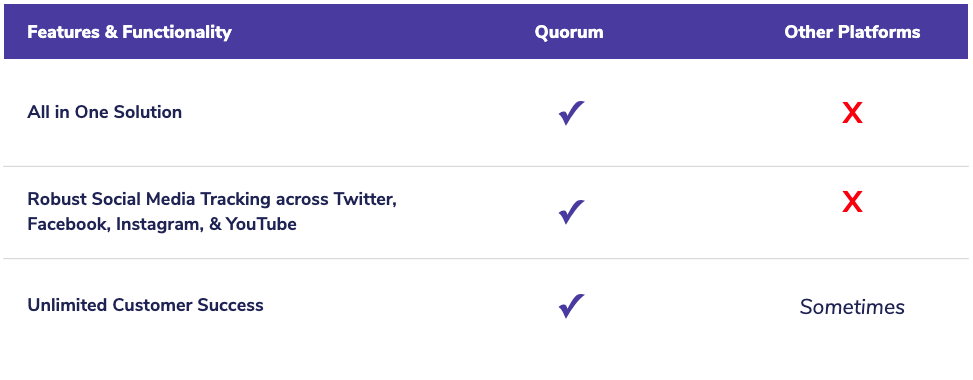Quorum’s public affairs software helps you map, track, change, and report on your policy landscape – all in one place. Federal agencies use Quorum to streamline their workflow in three key ways: