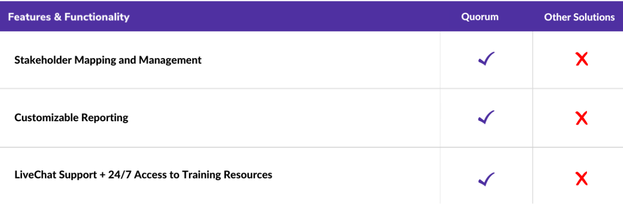 Quorum’s relationship management tools help you engage patients and healthcare leaders to raise awareness and improve access to important medications. Pharmaceutical companies use Quorum to streamline their workflows in a few key ways: