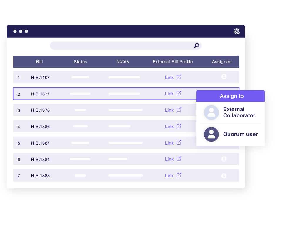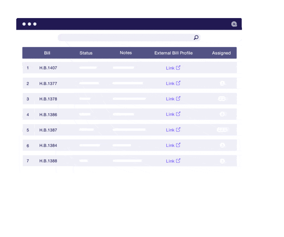 Assign bills directly to collaborators in a secure, interactive sheet where they can review legislation and leave comments directly on the bill in real-time. No emails, spreadsheets, or scattered follow-ups are required.