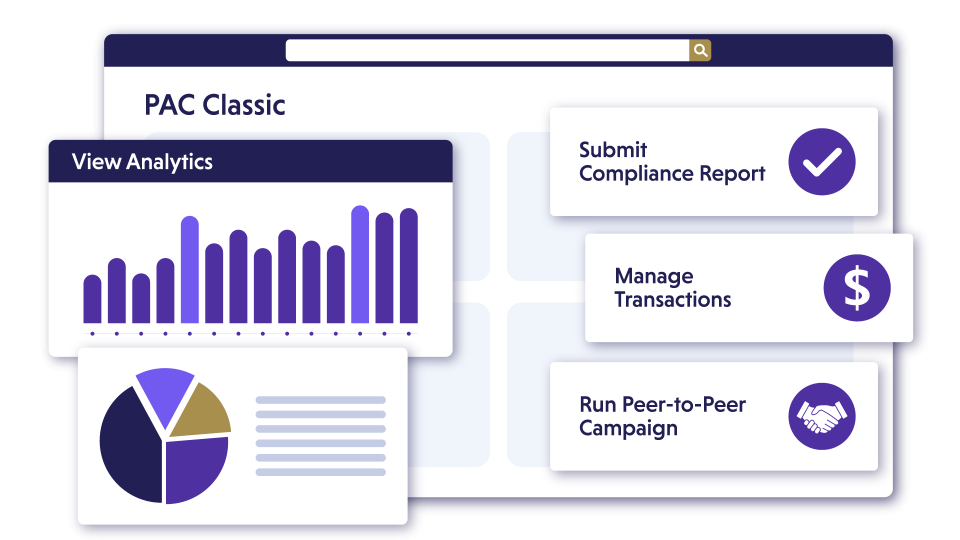 Easily manage daily PAC operations and file compliance reports. Give your team time to focus on growing your PAC with powerful data management tools.