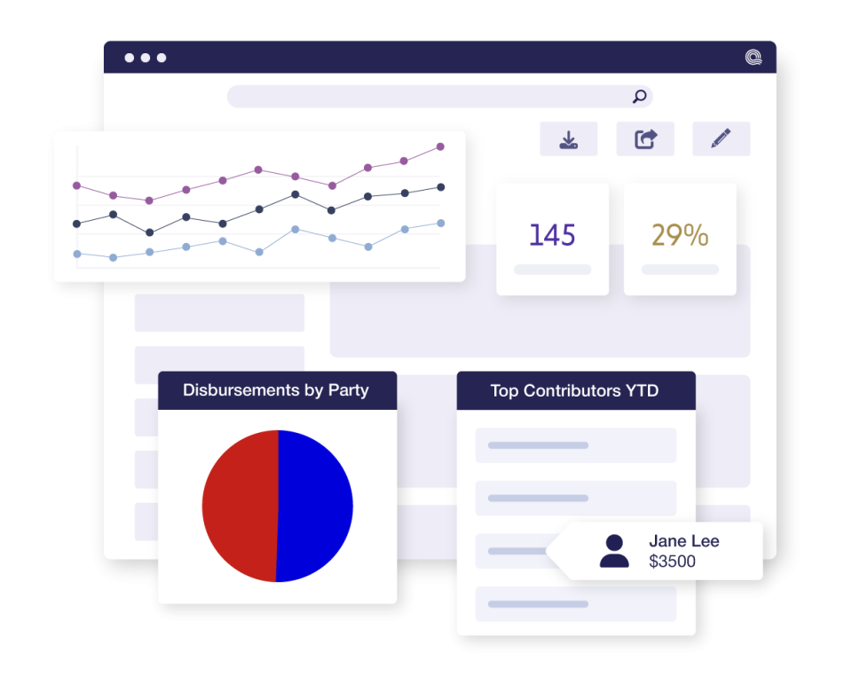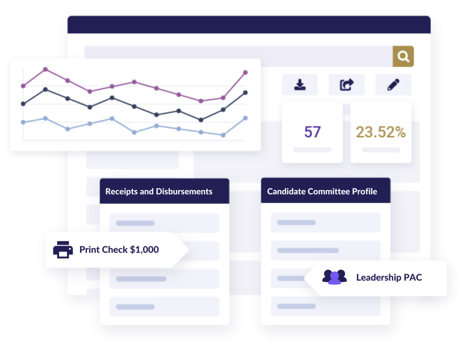 Stay compliant, raise more funds, and report results with modern, tools and support from a team of industry experts. Easily manage daily PAC operations and file state and federal compliance reports. Harness advanced solicitation and relationship-building tools, build beautiful custom websites, and make it easy to drive PAC participation and collect contributions.