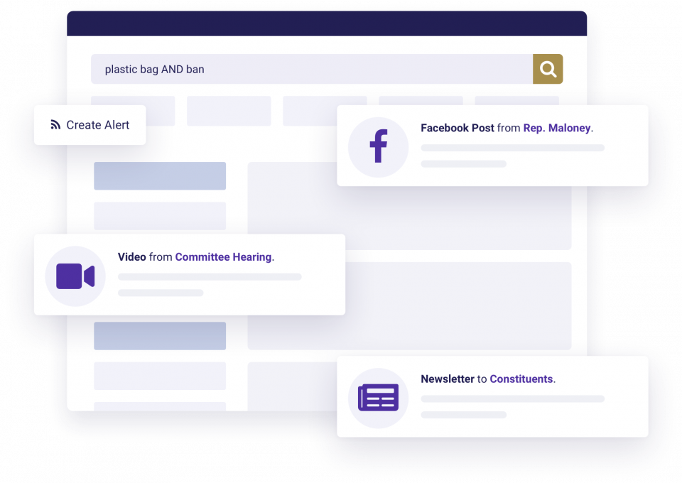 Establish an early warning system with real-time mobile and email alerts for mentions of your issues or organization across bills, regulations, committee hearings, social media, floor transcripts, and more.